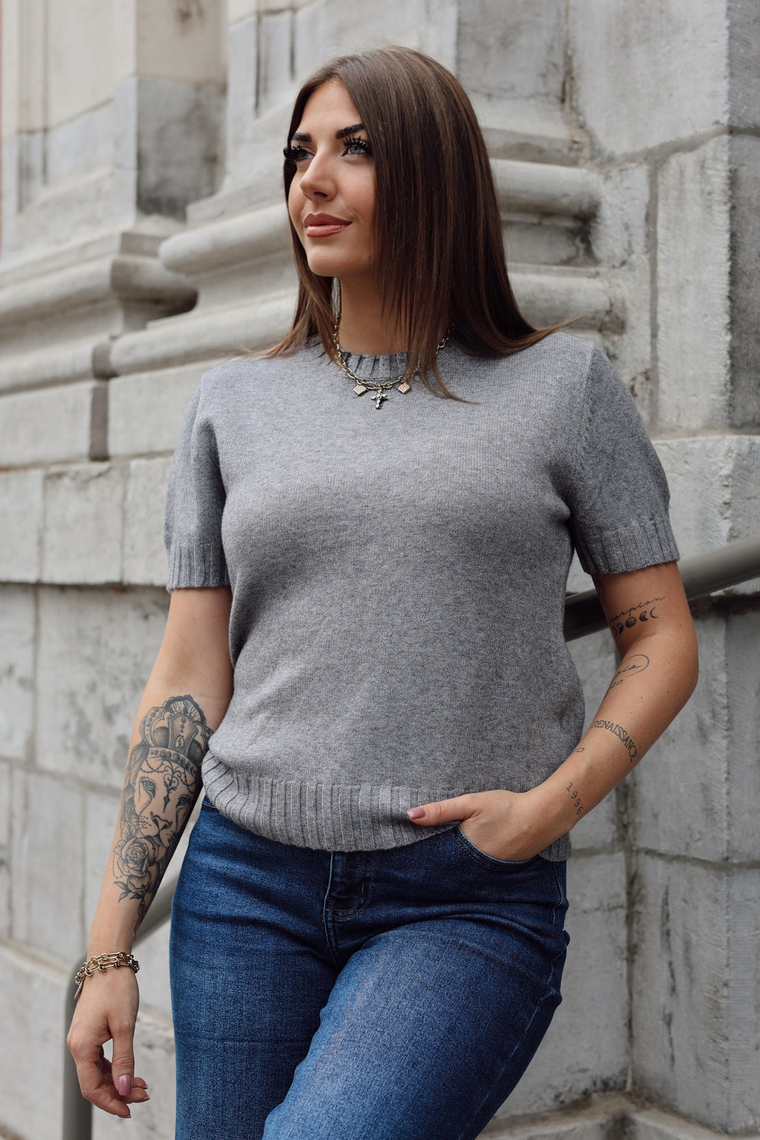 Le pull MARISA combine simplicité et élégance avec ses manches courtes et ses détails soignés...