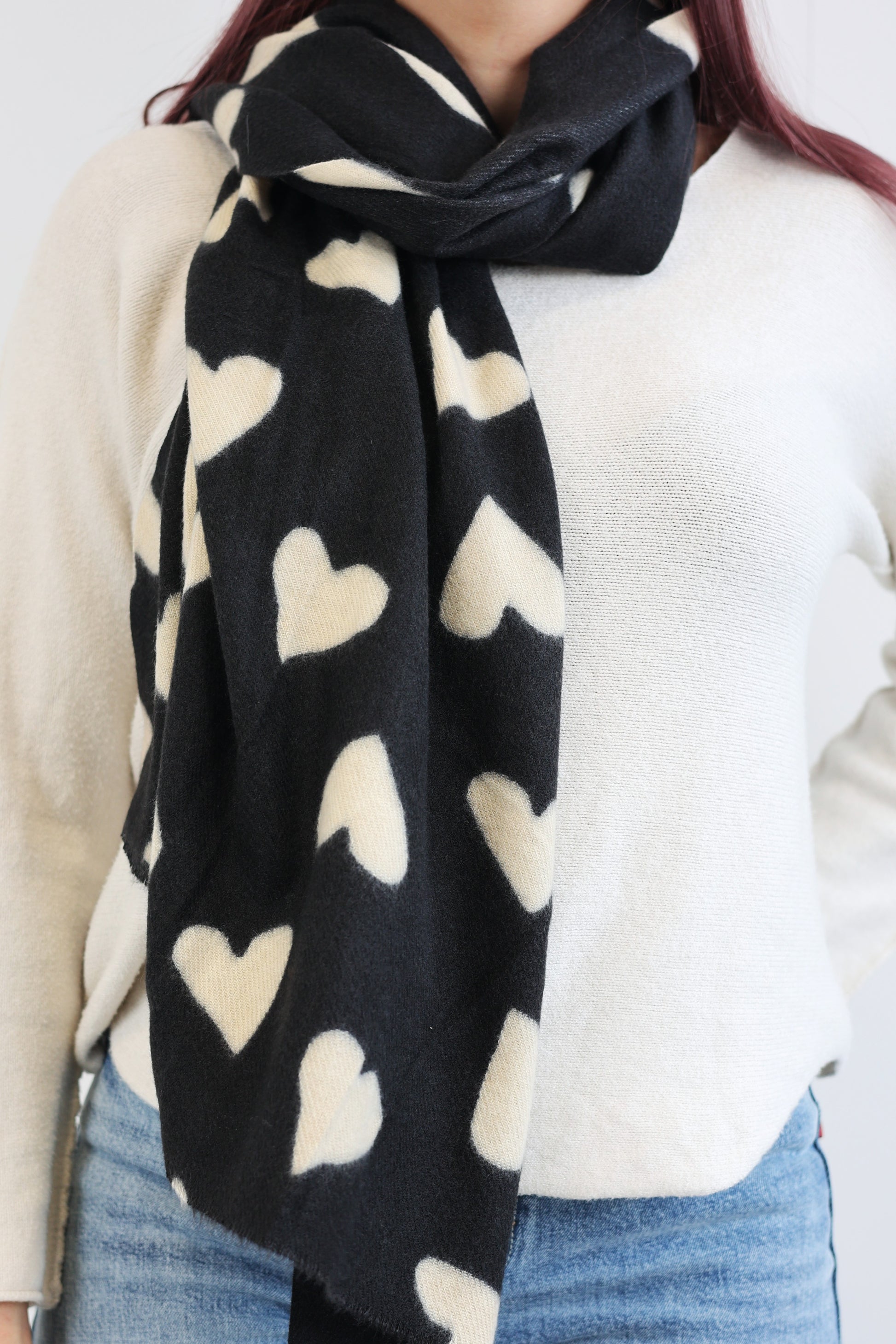 L'écharpe VALENTINE allie style et confort avec ses motifs cœurs délicats qui parsèment toute sa surface. Parfaite pour exprimer votre tendresse, elle vous enveloppe dans une chaleur douillette lors des journées froides. Un accessoire incontournable qui combine originalité et fonctionnalité pour sublimer vos tenues d'hiver.