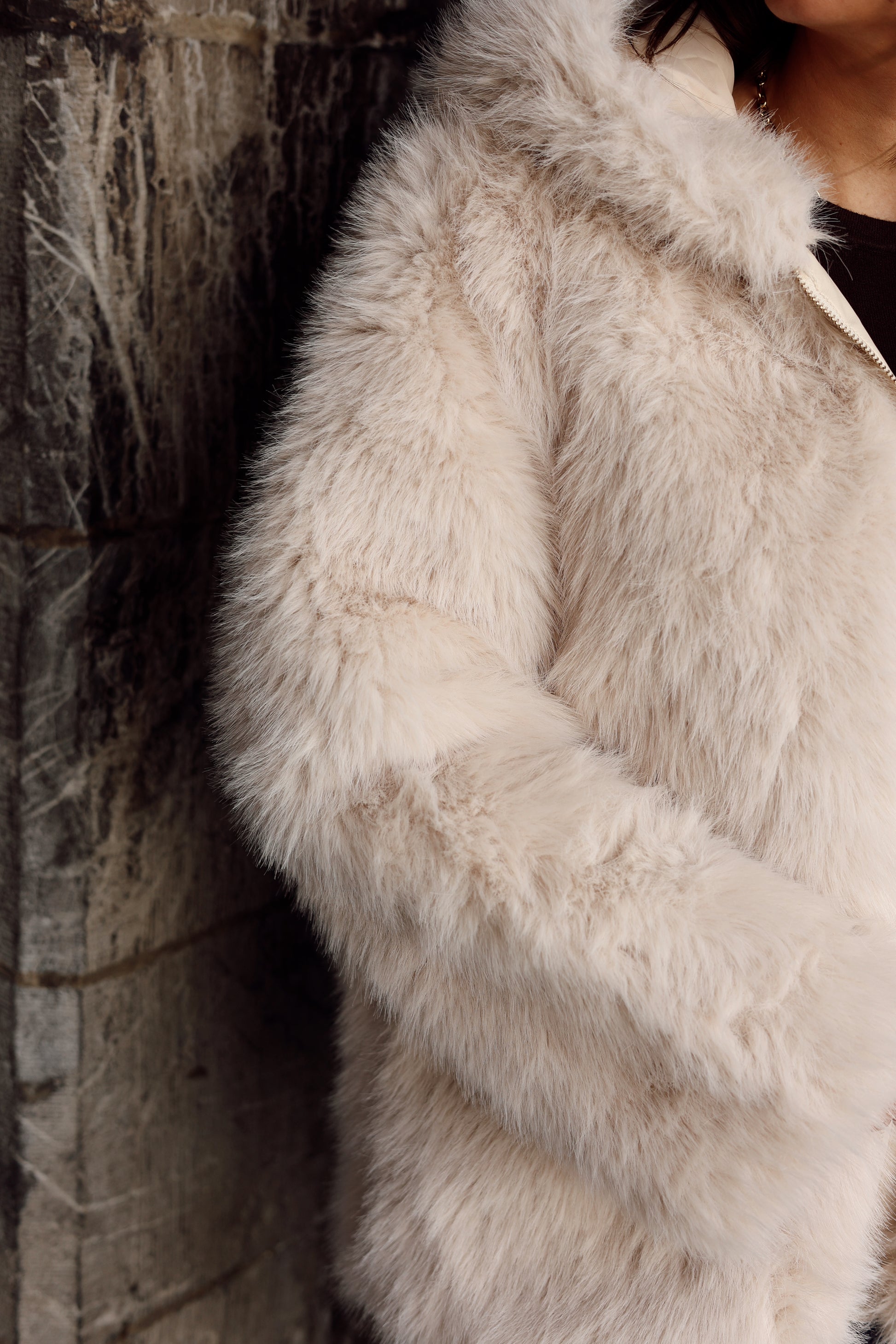La fourrure TYSSA est votre protection ultime contre les rigueurs hivernales. Dotée d'une capuche intégrée et d'une fermeture éclair, elle offre une couverture complète. Elle est conçue comme une véritable armure contre le froid.