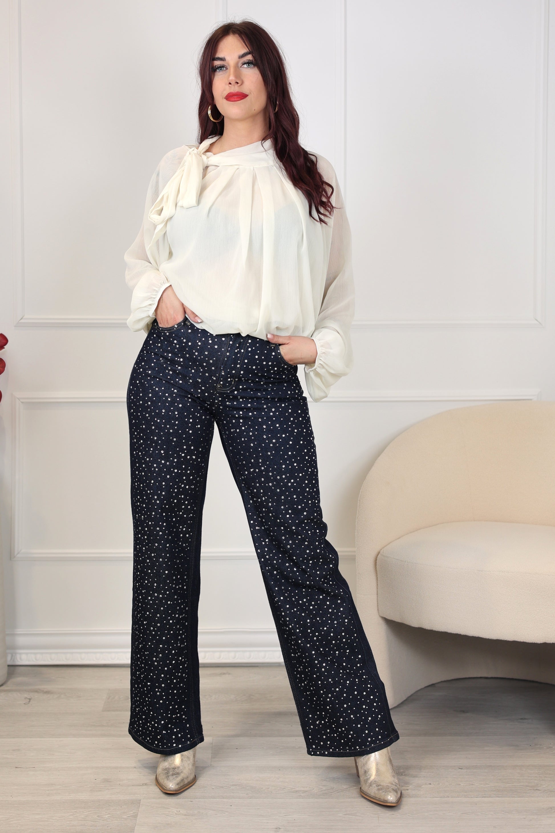 Le jeans ZOE brille de mille feux grâce à ses strass minutieusement intégrés au tissu. Ce modèle scintillant transforme chaque tenue en création remarquable, idéal pour affirmer votre personnalité et capturer tous les regards. Confortable et tendance, le ZOE vous accompagne du jour à la soirée avec style et confiance. Une pièce incontournable pour rayonner sans compromis.
