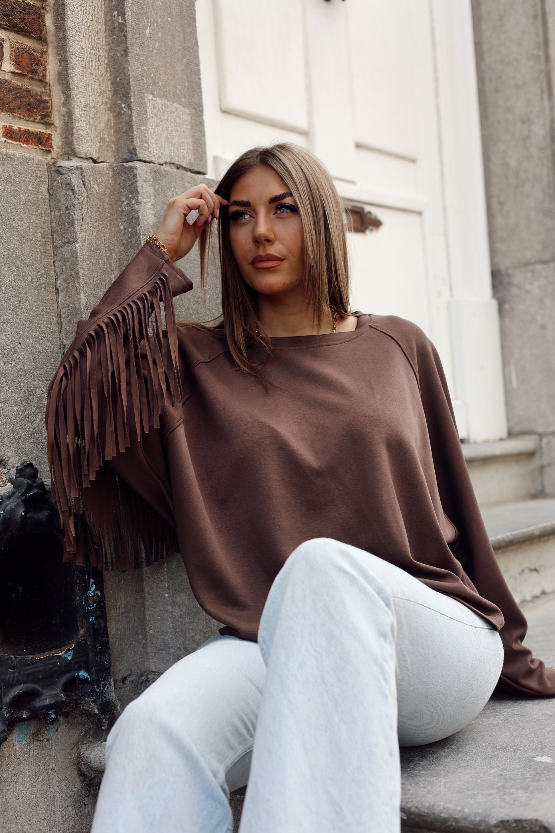 Le pull ELLIE capture l'essence du style western avec ses manches ornées de franges dynamiques. Conçu pour vous envelopper dans le confort, sa silhouette généreuse offre une aisance parfaite au quotidien. Le col rond classique complète cette pièce polyvalente, idéale pour créer des looks authentiques et relaxants.