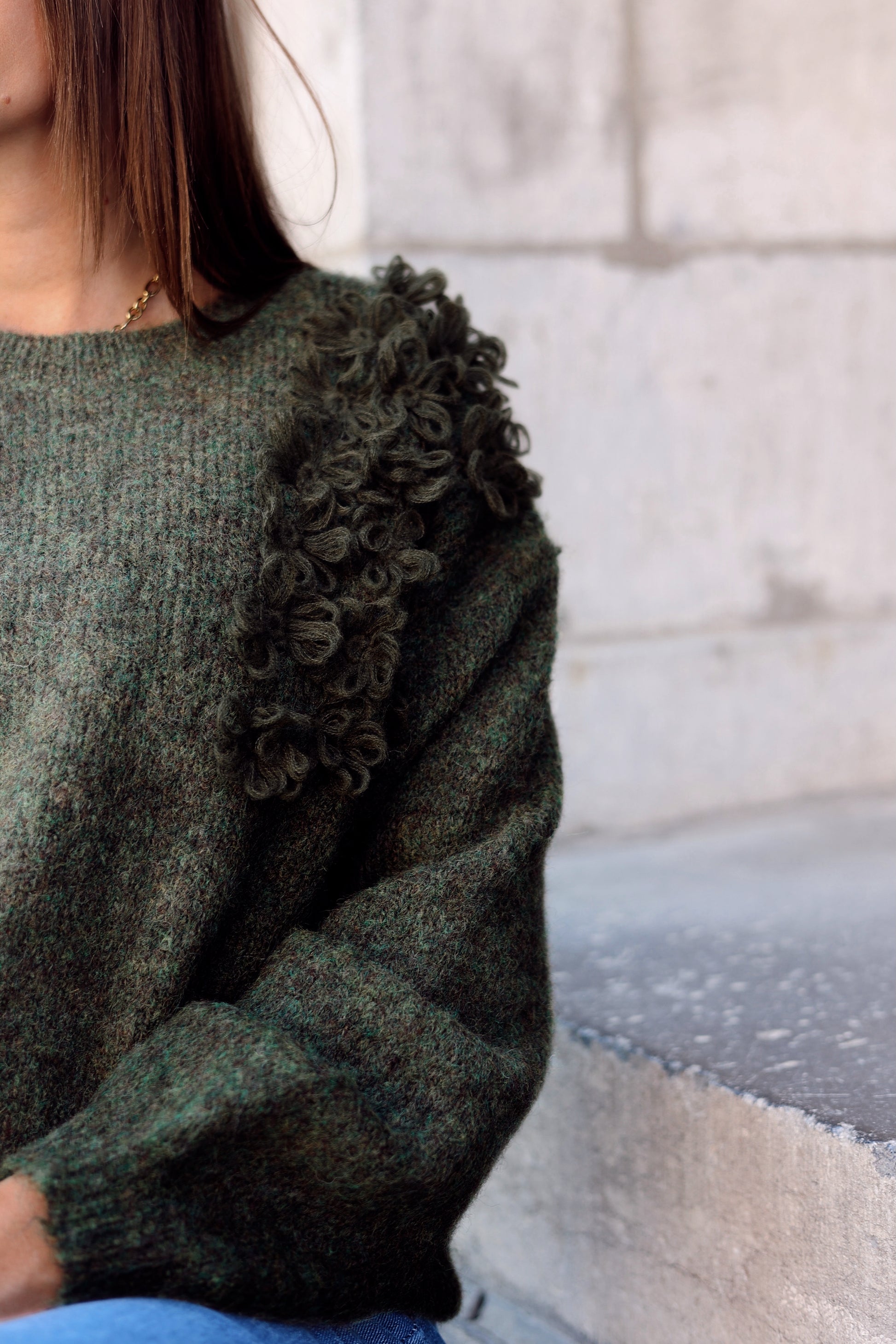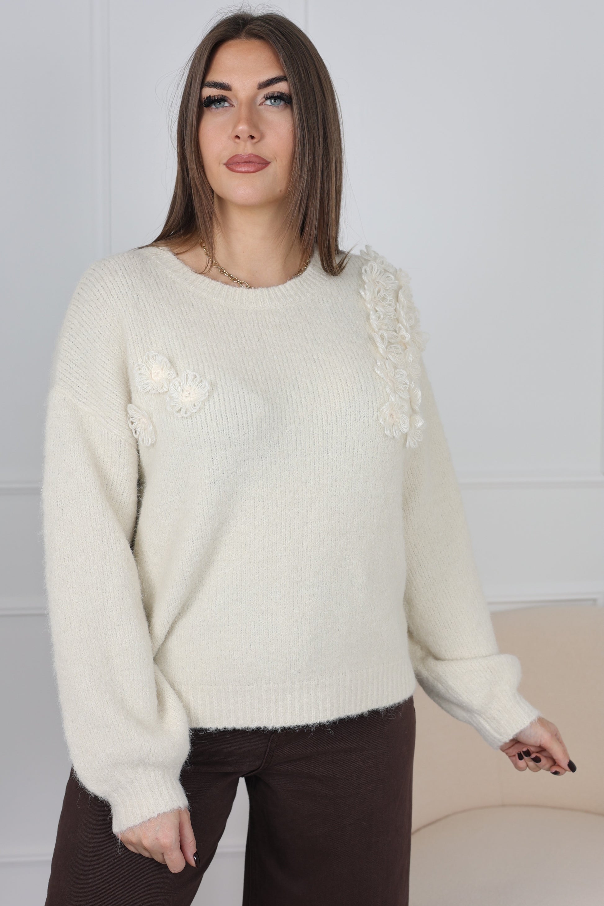 Le pull MELINA est un basique rehaussé par un délicat motif floral tricoté sur l'épaule. Sa matière douce offre confort et style pour tous vos looks. Versatile et charmant, c'est la pièce essentielle à adopter.