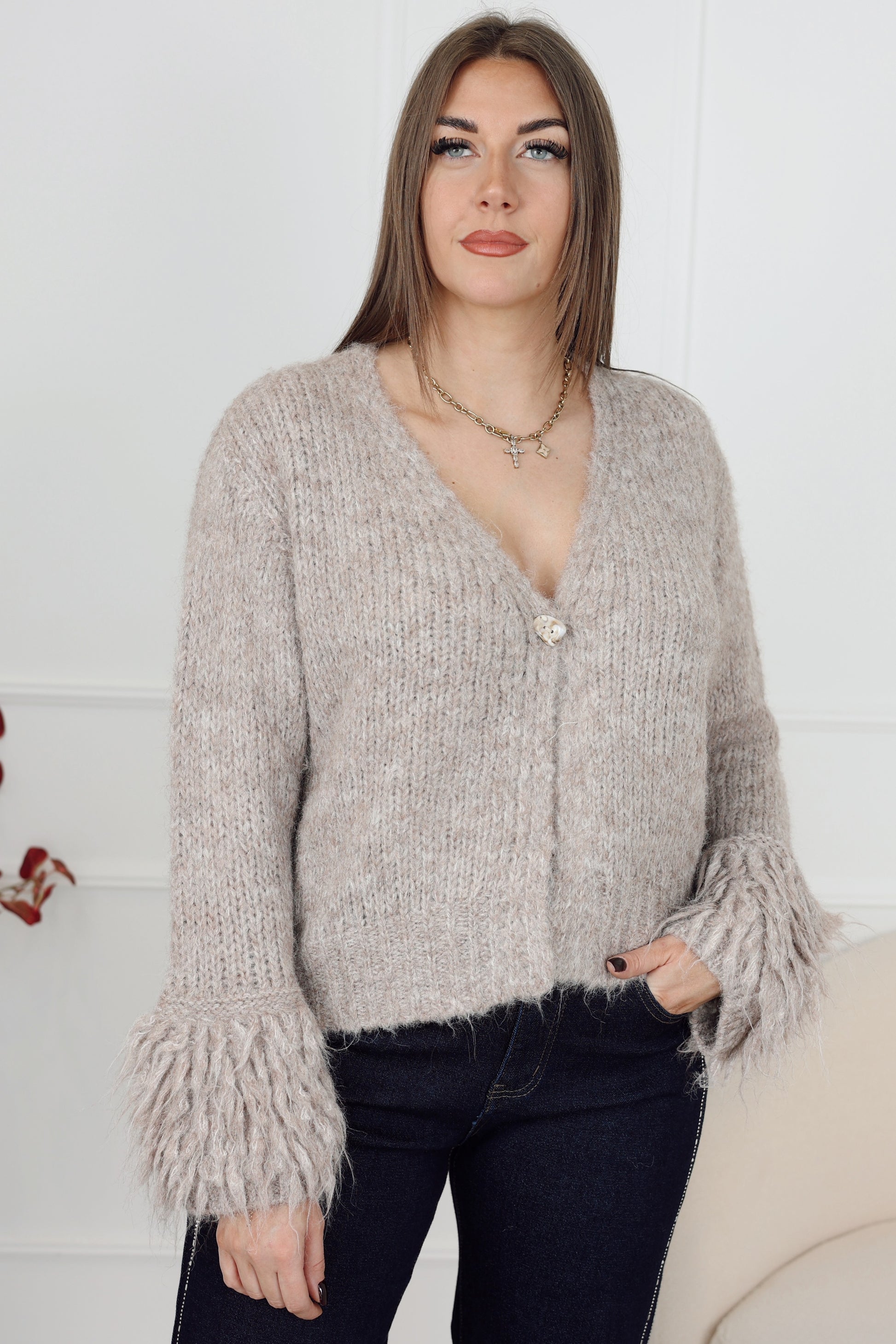 Le gilet NAISE incarne la féminité, avec sa coupe gilet épurée et son col en V raffiné. Il est confectionné dans une matière douce et agréable au toucher. Les détails en plume aux extrémités des manches ajoutent une touche de sophistication et de légèreté. Un basique de luxe à porter au quotidien.