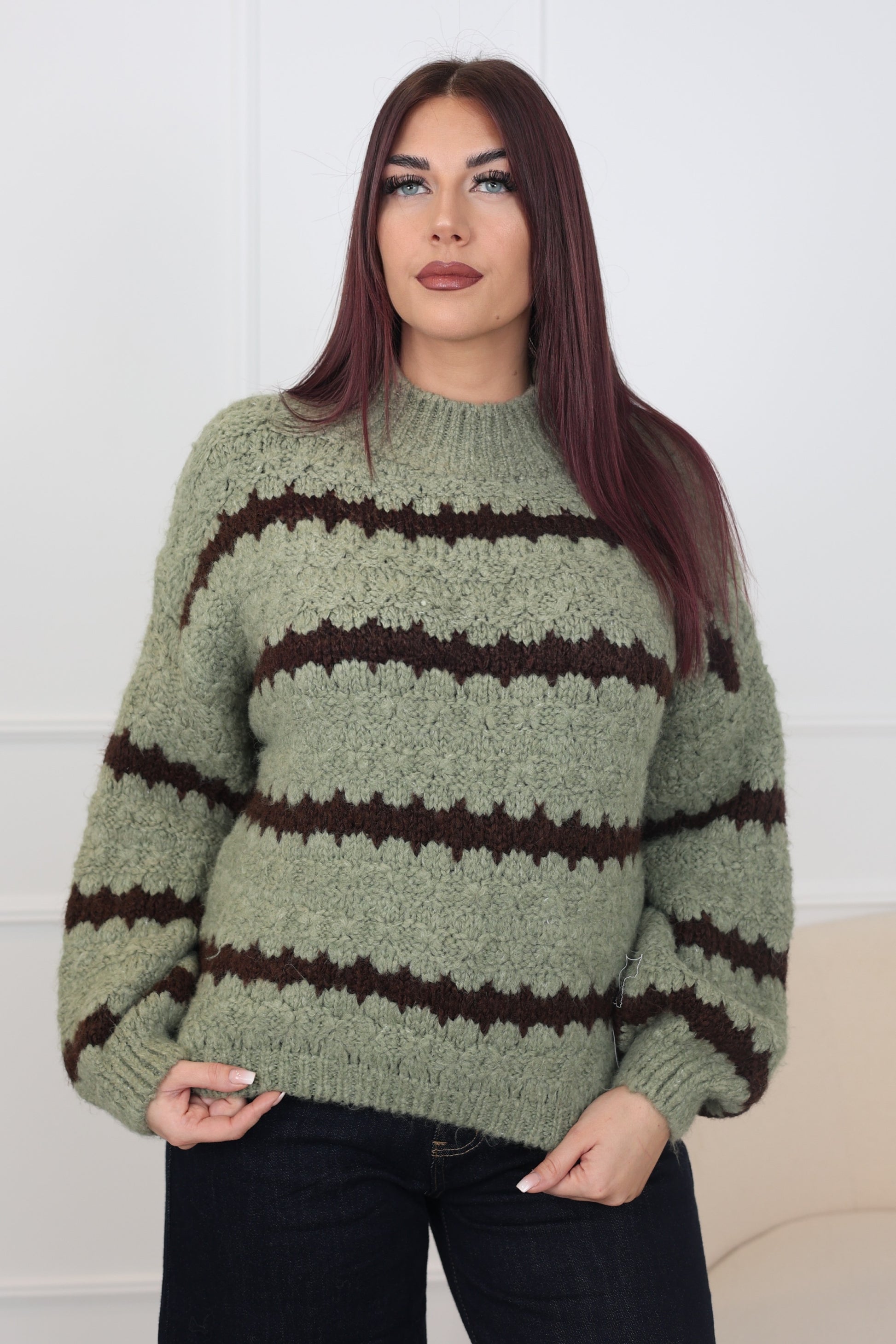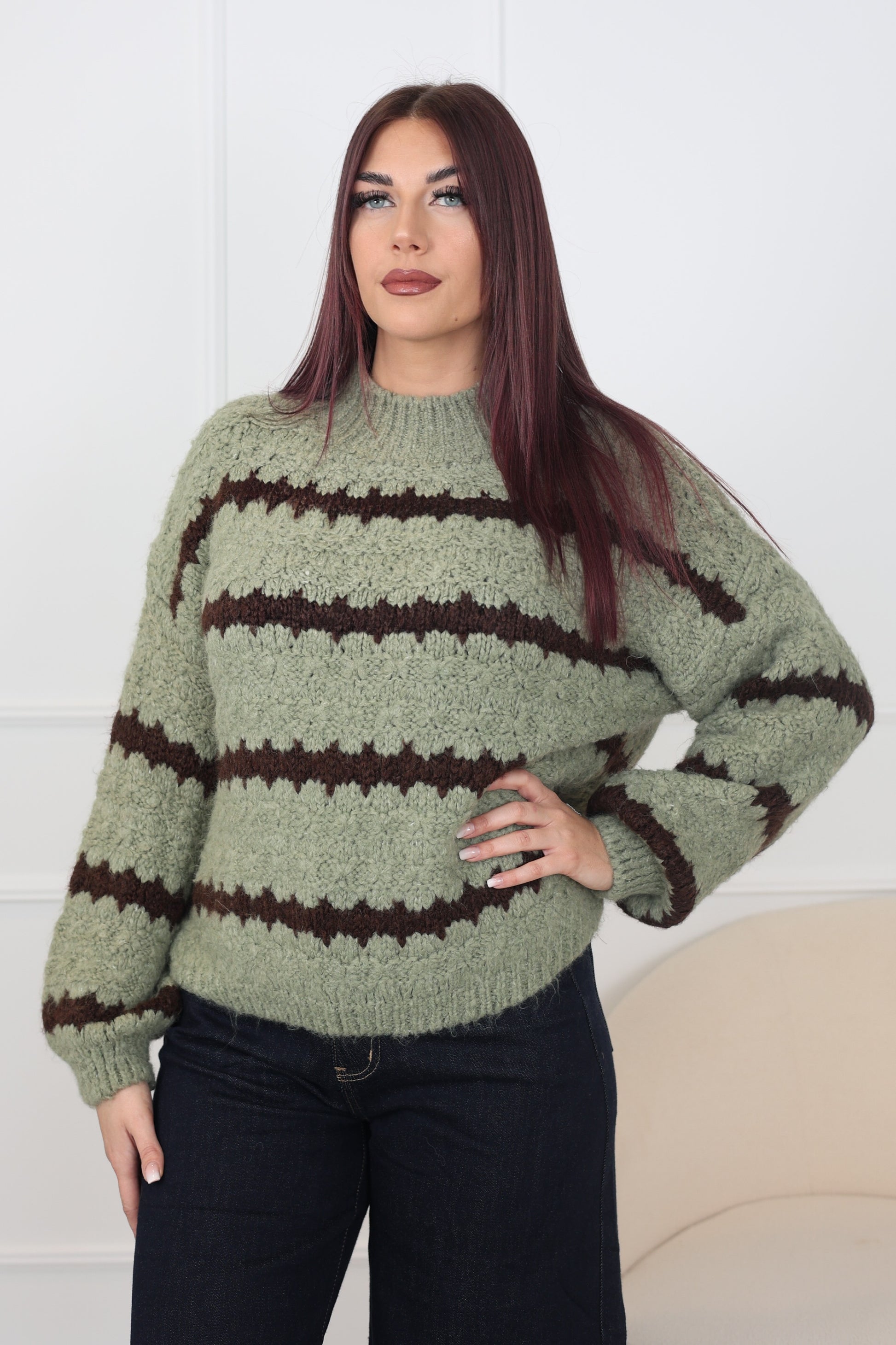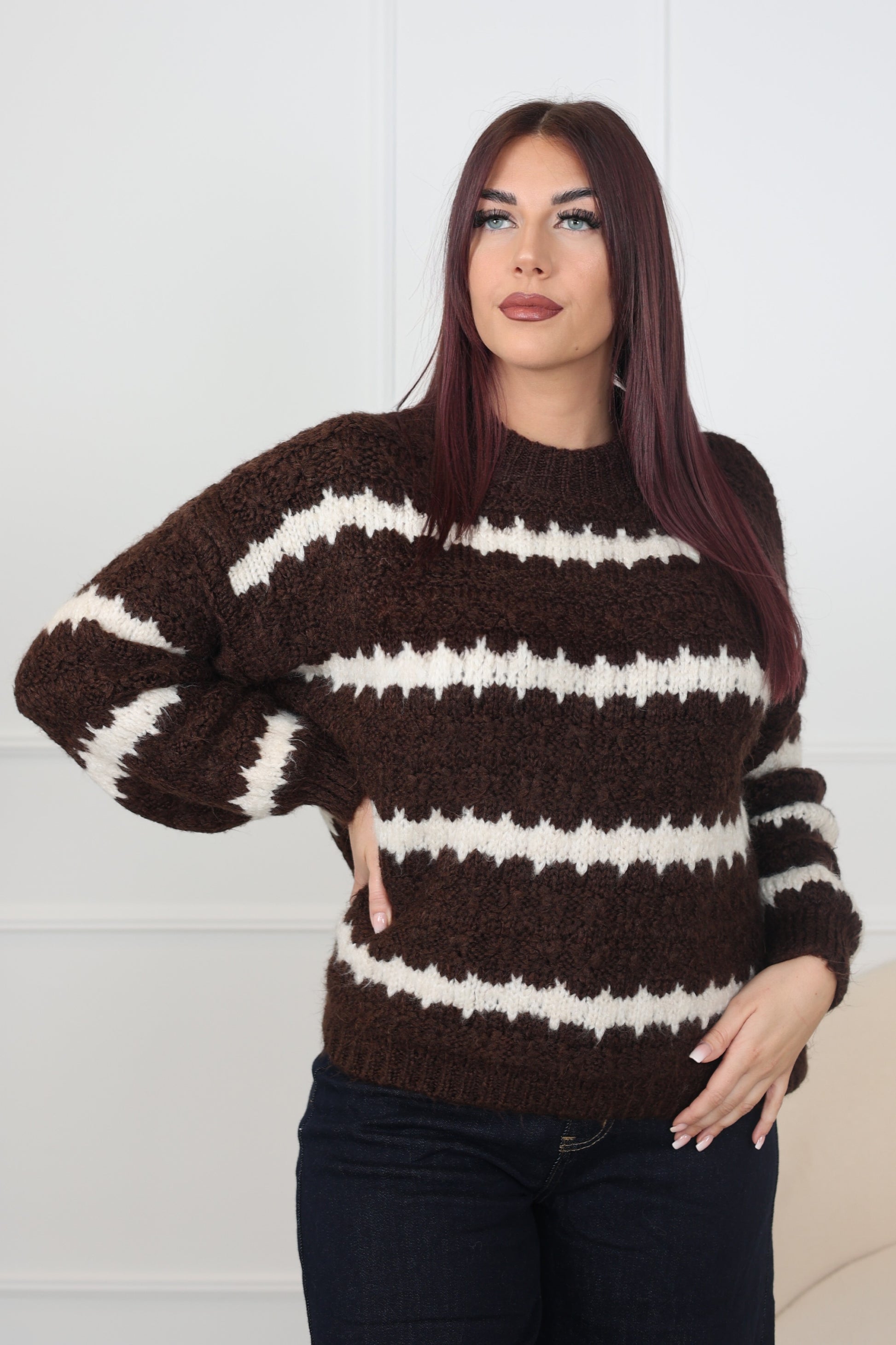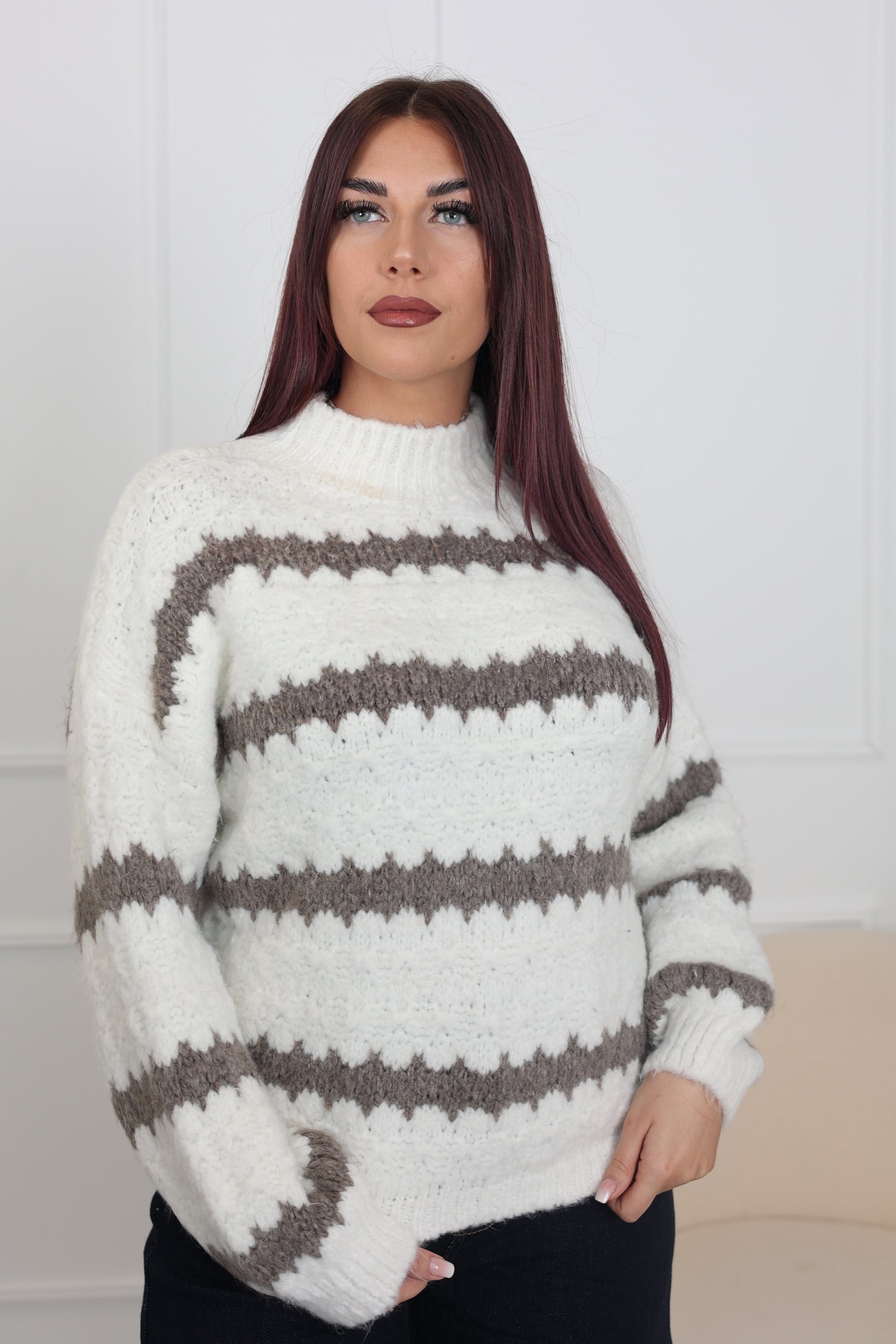 Pull en taille unique, maille douce et souple pour un tombé naturel.