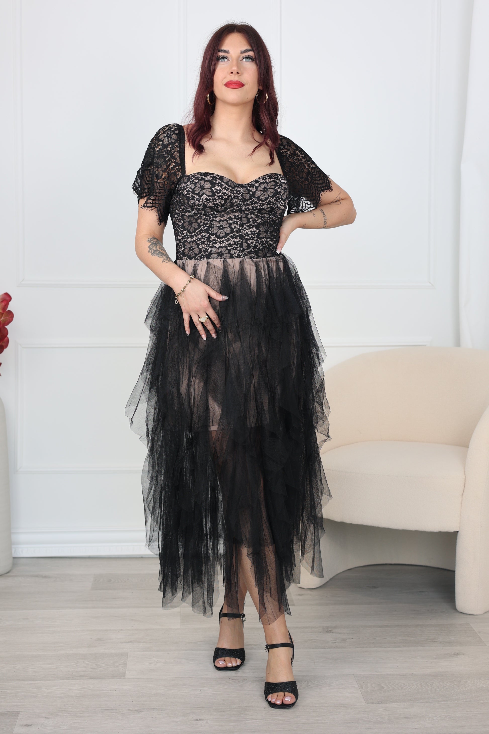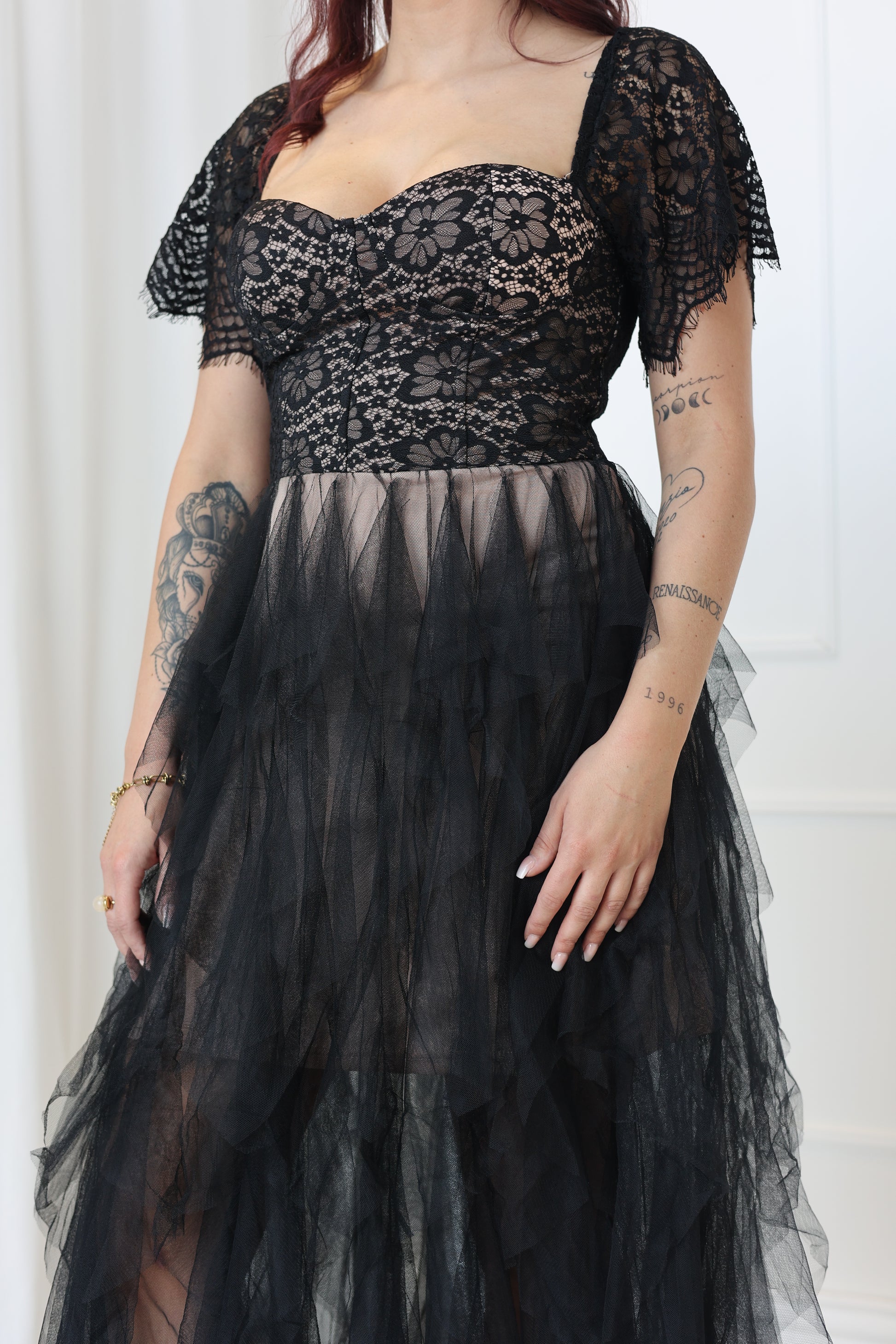 La robe Leonie se distingue par ses froufrous travaillés avec finesse. Une pièce singulière qui exprime l'élégance avec assurance et personnalité.