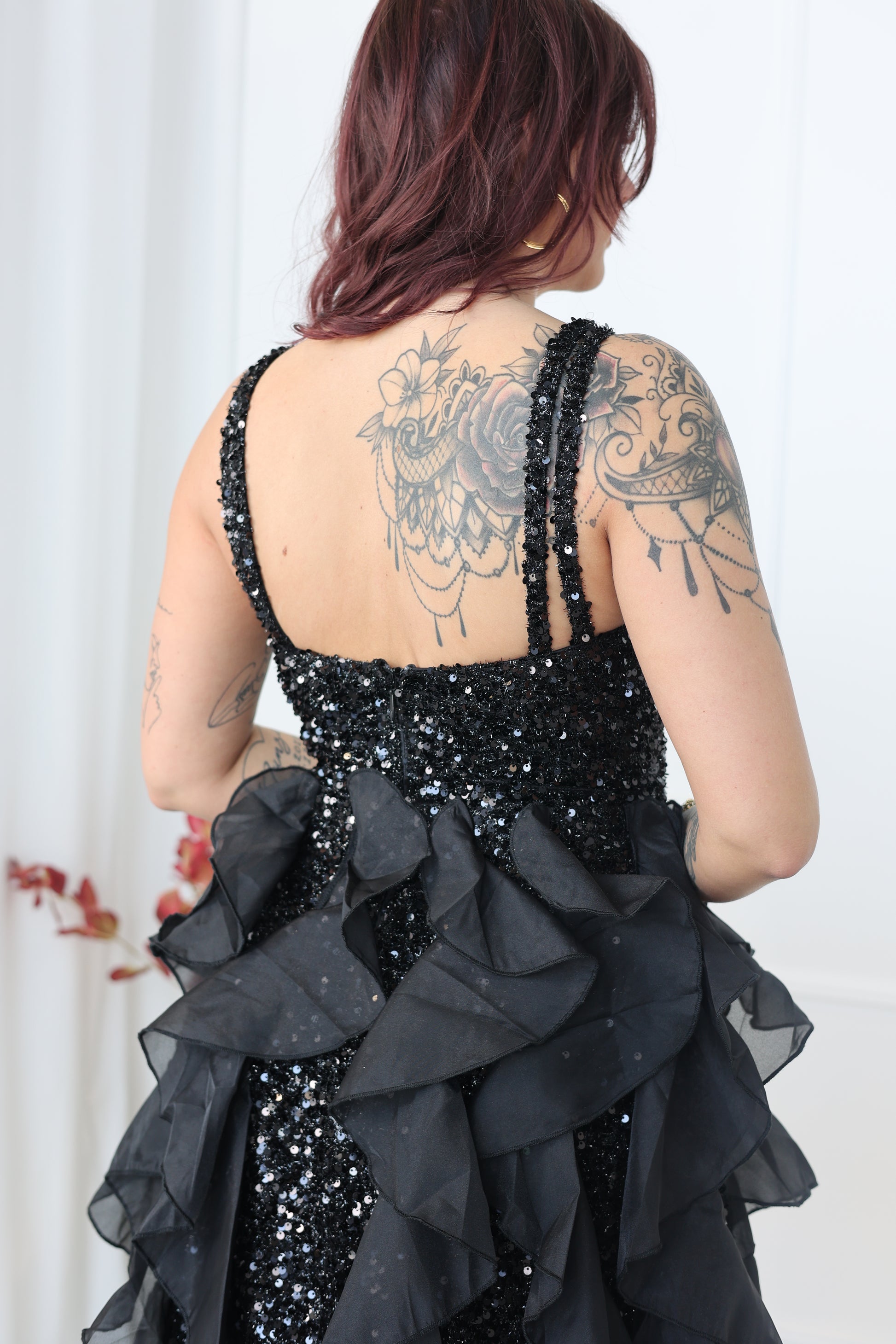 La robe MELIANE incarne l'élégance festive avec ses volants sophistiqués et son allure majestueuse. Incontournable pour les grandes occasions, elle allie féminité raffinée et détails spectaculaires. Une pièce qui transforme chaque moment en événement mémorable.