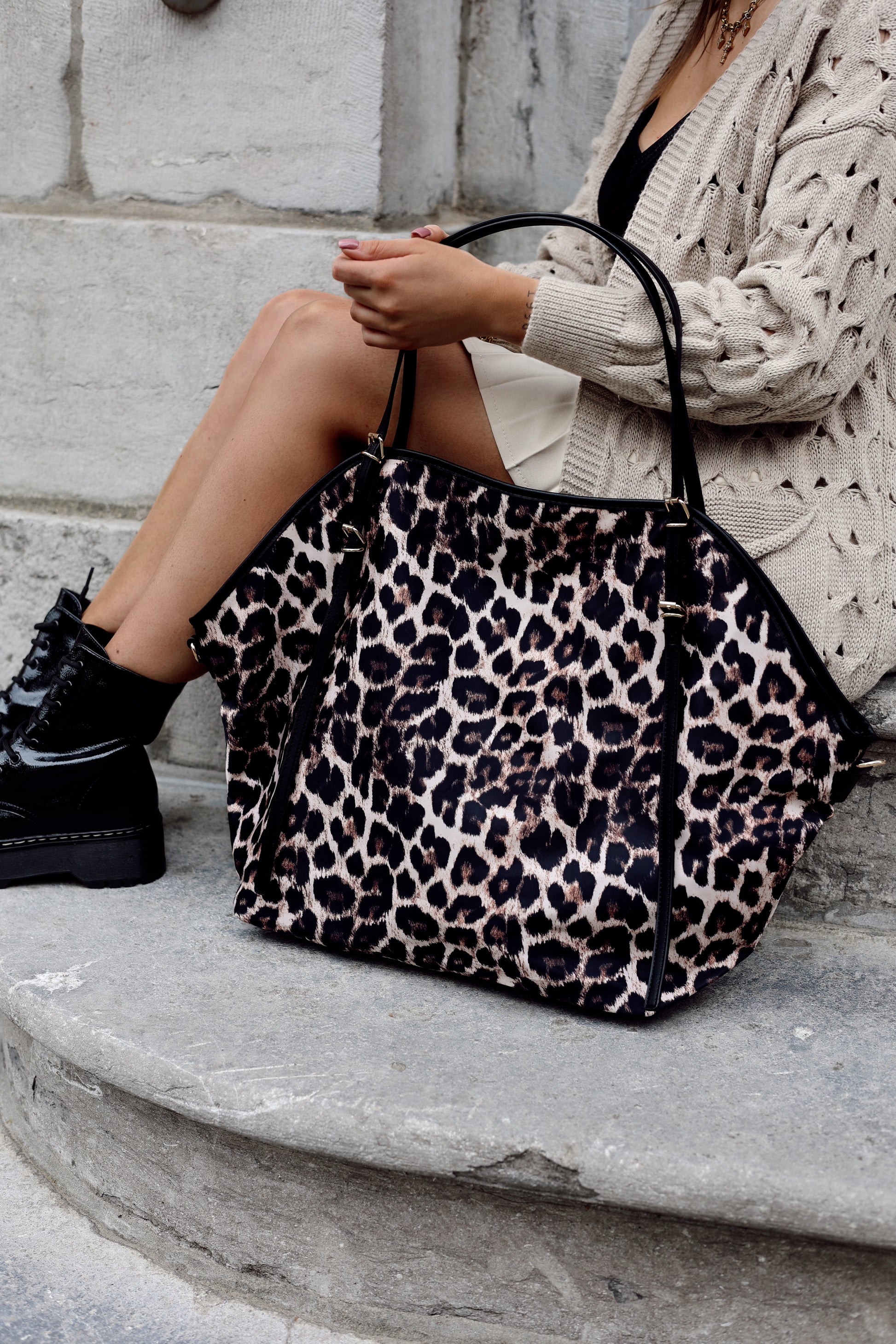 Le sac ELANE incarne l'élégance sauvage avec son motif léopard captivant. Spacieux, ce sac est un accessoire qui affirme votre style.
